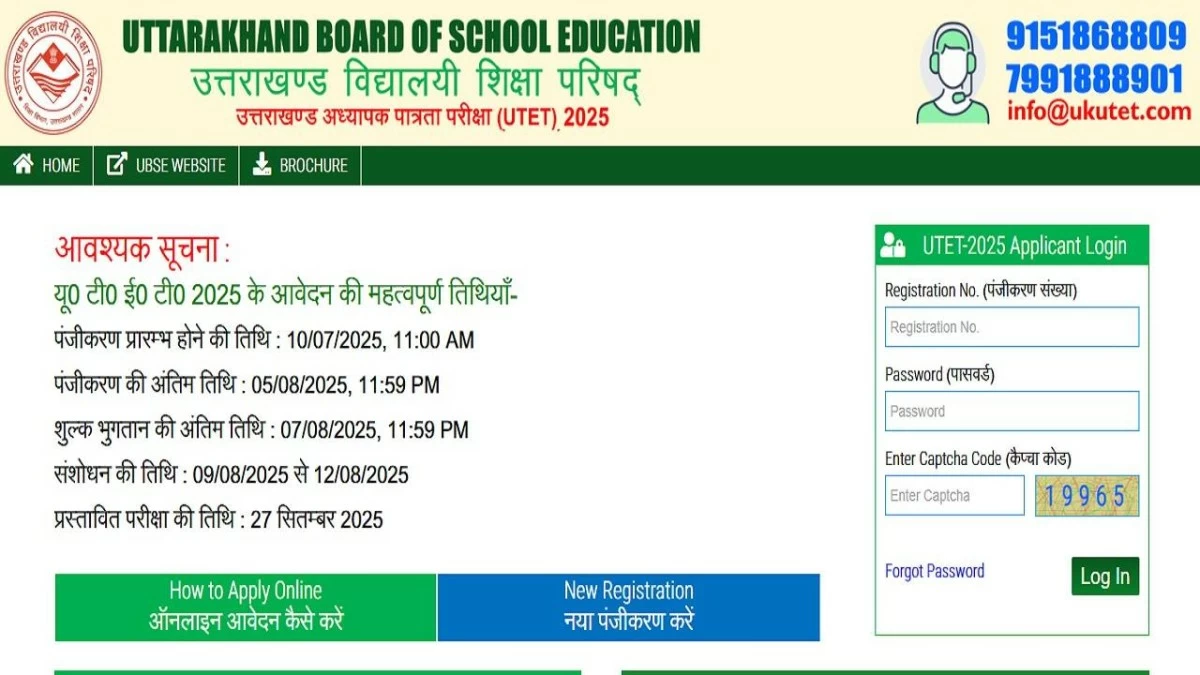 Dehradun: The Uttarakhand Board of School Education (UBSE) has started accepting online applications from eligible candidates for the Uttarakhand Teacher Eligibility Test (UTET) 2025. The Uttarakhand UTET recruitment 2025 application window for teaching classes 1 to 5 (primary) and classes 6 to 8 (upper primary) has been opened on the official website at ukutet.com.