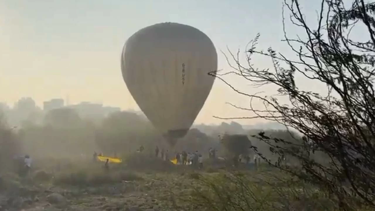 Hyderabad: A hot air balloon, which was carrying a pilot and three passengers, made an emergency landing near Neknampur lake on Saturday, January 17, due to a technical snag, a video showed.