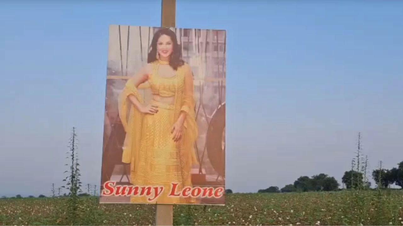 A farmer in Mudanur village of Yadgir district in Karanataka has found an unusual way to protect his cotton harvest from unwanted attention. To keep people from casting the “evil eye” on his crop, he has put up a large cutout of actor Sunny Leone near his field.