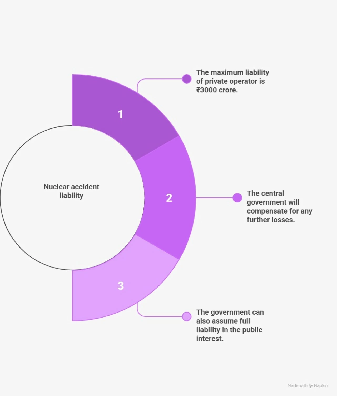 However, alongside this strategic safeguard lies the most controversial provision. The Bill limits the maximum liability of a private operator in the event of a nuclear accident to ₹3,000 crore. Any damage beyond this amount would be borne by the government.