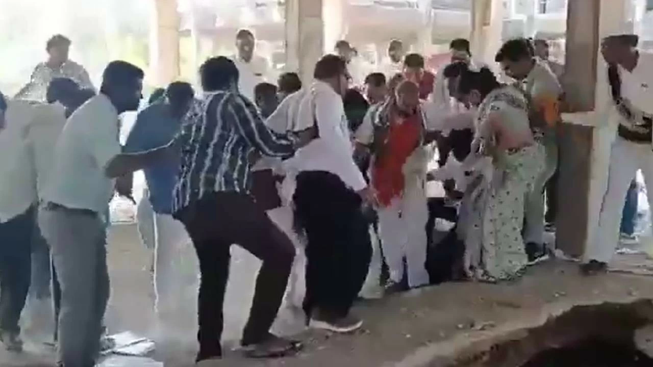 Telangana: Government Whip and Vemulawada MLA Aadi Srinivas, Siricilla Collector Garima Singh narrowly escaped injury as they inspected double bedroom houses in Vemulawada municipal limits along with Congress leaders and other officials on Tuesday morning. During the site visit, a portion of the flooring suddenly caved in, but both officials escaped unharmed.