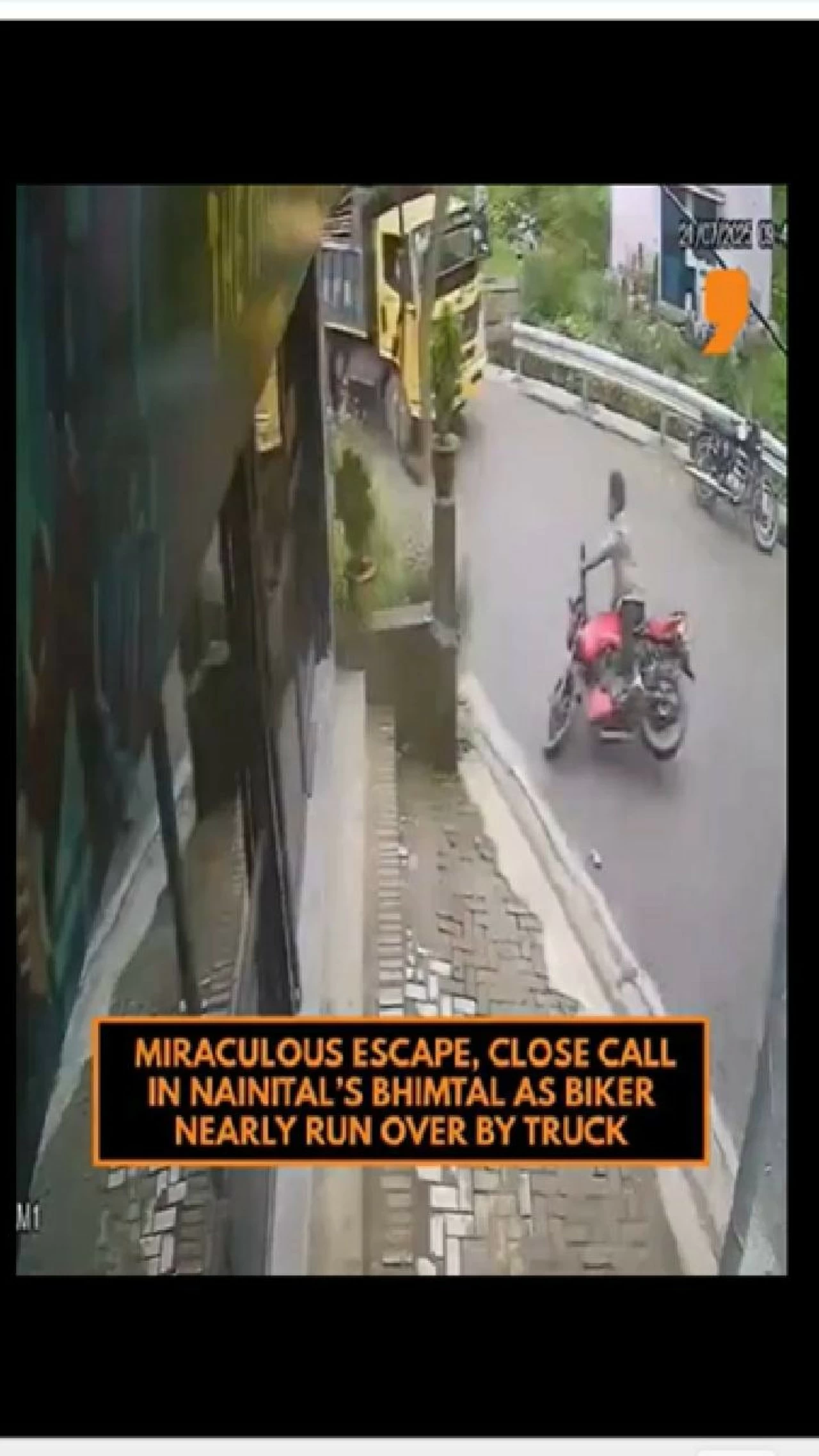 WATCH: Biker Escapes Death by Inches in Bhimtal