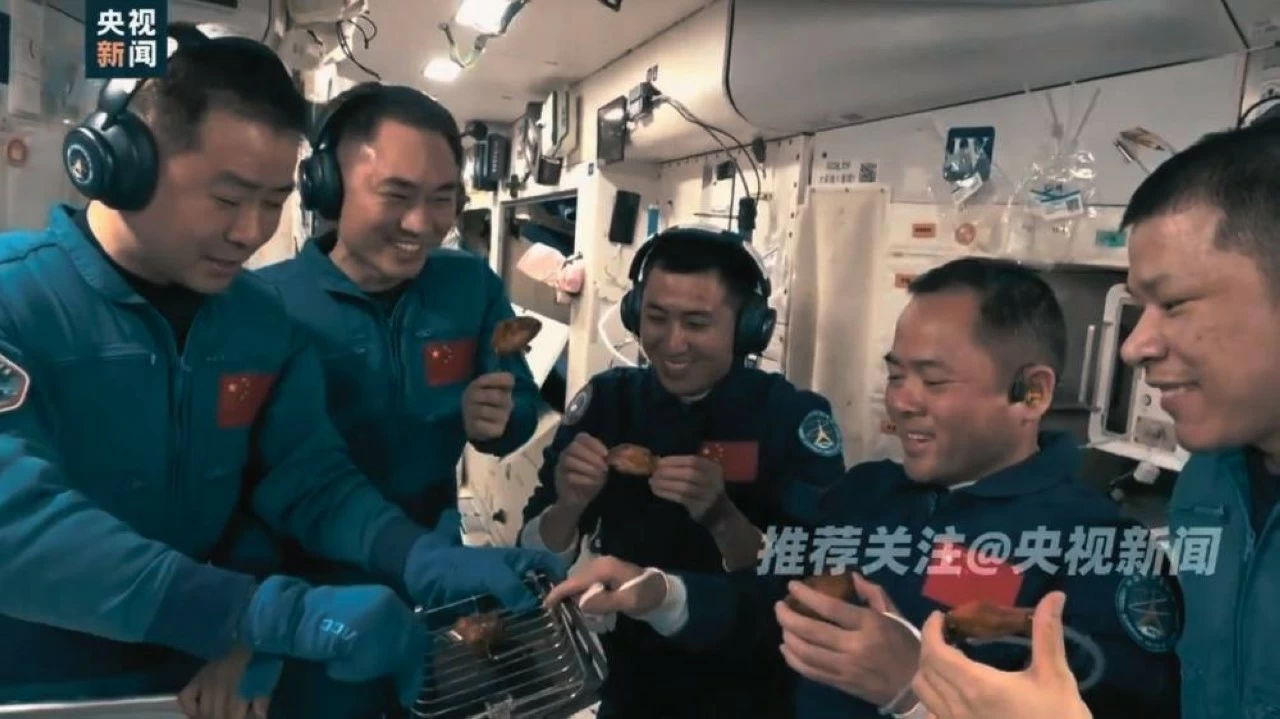 With the successful docking Tiangong entered into a three module and three spacecraft configuration. The hatch was opened at 4:58 hours Beijing Time on 1 November with the Shenzhou-20 crew, consisting of Chen Dong, Chen Zhongrui and Wang Jie welcoming the newcomers on board. The handover process lasts for about a week. All the inhabitants on board celebrated with a BBQ party, where the oven on board was used to roast chicken wings and beef steaks. A standard crew rotation lasts for a period of six weeks, with the a crew of three remaining on board at all times. It is not clear if the mice received any fresh meat.