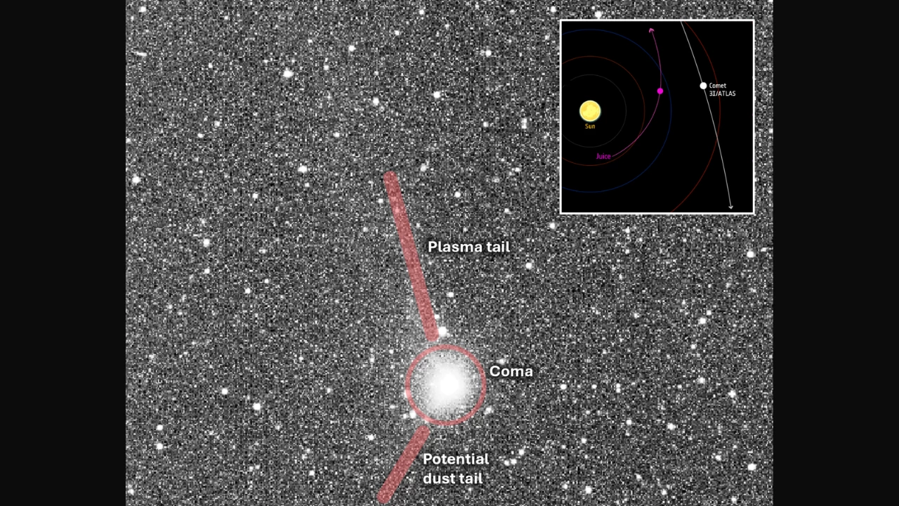 Juice was further away from 3I/ATLAS than the Mars orbiters when they observed it in October, but it caught a glimpse of the comet at the time when it was nearest to the Sun. This made the spacecraft reach the comet more actively. A NavCam snapshot indicates that there was high outgassing that the mission team anticipates observing further when the entire instrument data is received.