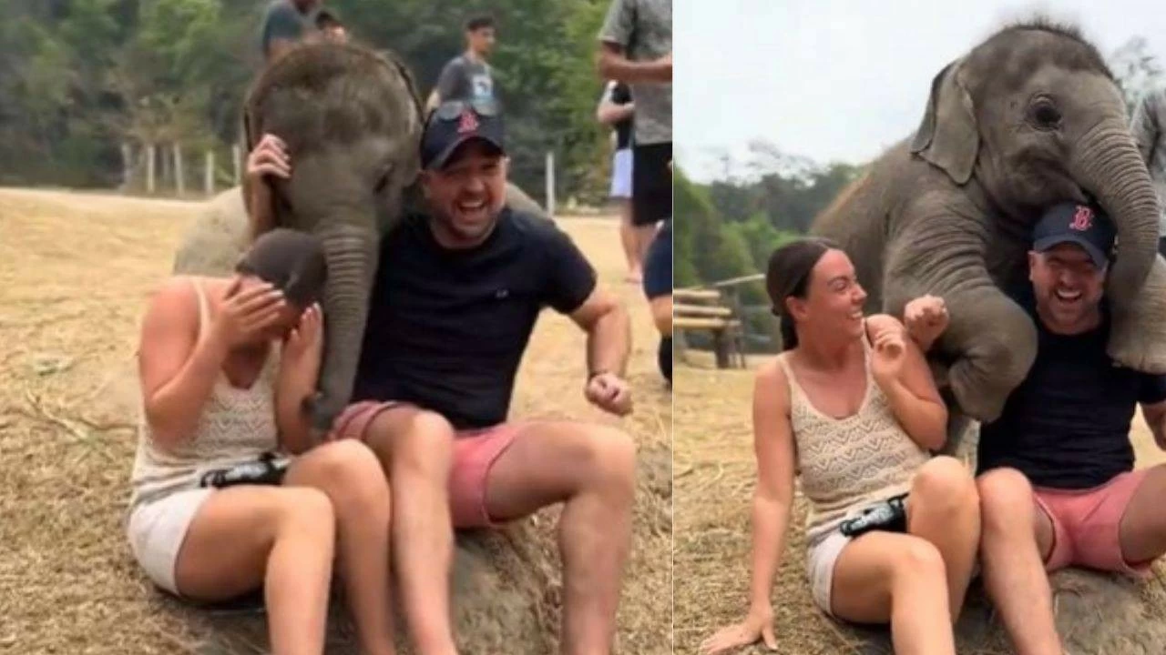 New Delhi: A video shared on social media showed a baby elephant expressing its love to a couple. The enthusiastic baby elephant smothered the couple, especially the man. Despite being a little uncomfortable, the couple sat in the same position, laughing and enjoying the unexpected moment. The elephant foondled he couple and gave a man a tight hug. The video was shared on social media by the X page, Nature is Amazing. It was shared with the caption, "Baby elephants think humans are so cute and want to hug us." The clip garnered numerous comments. One wrote, " How beautiful that is... that this beautiful creature wants to play with you... and doesn't realise its size." Others were curious to know how much it weighed.