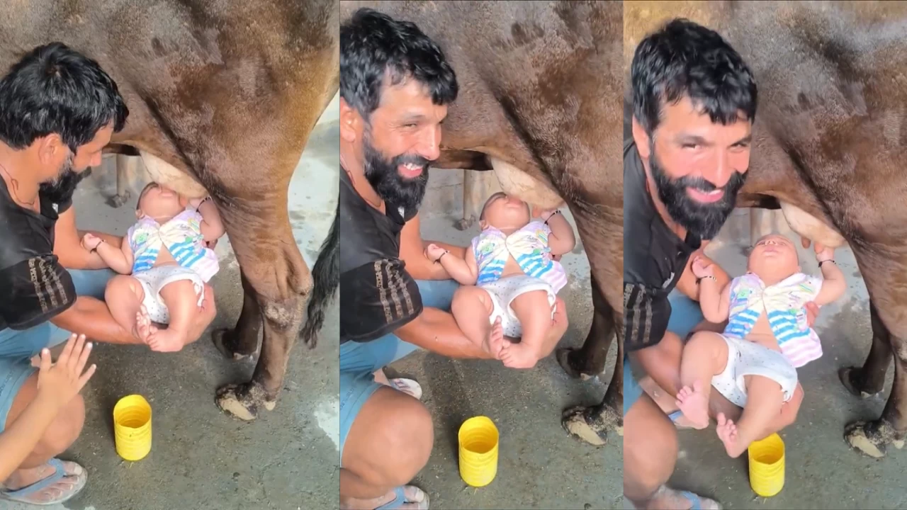 An undated video showing a baby being fed raw milk directly from a cow’s udder has gone viral, sparking outrage and concerns over the child's safety. The clip, shared on X (formerly Twitter), shows a man smiling as he holds the baby to drink unpasteurised milk straight from the cow. The video, with over 9.8 lakh views, triggered a storm of criticism online, with many calling it reckless and dangerous.