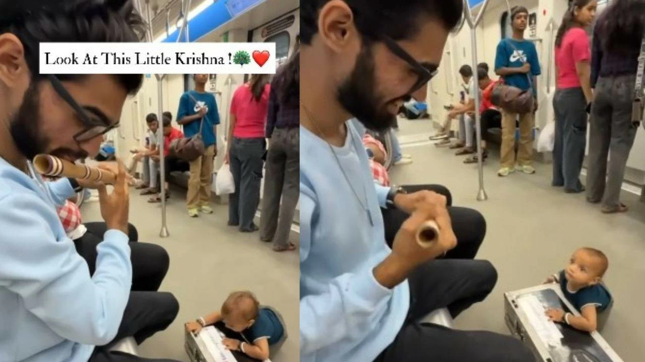 Mumbai: A man's musical performance was interrupted by an adorable baby. In the video making rounds online, a young man named Tanishq Ghodke took out his flute inside Pune Metro and began to play the musical instrument. He started playing the popular little Krishna tune. It was then that a baby sitting opposite him crawled towards him. The little baby added his own twist to the man's performance. The baby's beats were in sync with the man's. Commuters were amused and watched the adorable duo in action. “The way the little kid looked at him, adorable," said one. Another added, "Little Krishna was so cute." The video was posted on Ghodke's Instagram page.